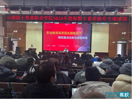 1月6日至10日,云南国土资源职业学院开展全校教职工数字素养提升专项培训。本次培训邀请国内职业教育领域专家学者授课,通过政策解读、实践分享、技能实操等多元形式,为全校教职工搭建了高质量学习交流平台,助力学校教育教学与管理服务提质增效。