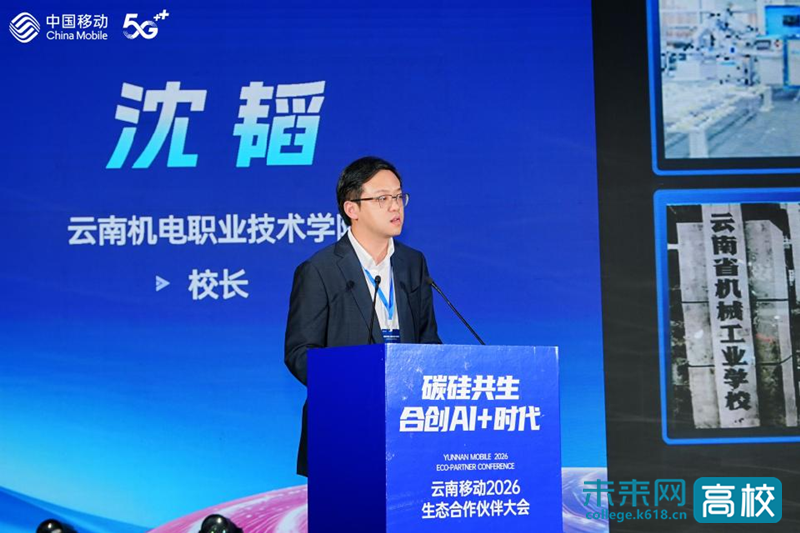 3月31日下午,中国移动云南公司2026生态合作伙伴大会在昆明举行,大会以“碳硅共生 合创AI+时代”为主题。云南机电职业技术学院作为特邀单位参加,学校校长沈韬作《数智驱动 职教创新》主旨演讲,副校长字庆锋出席战略合作签约仪式,校企携手共探职业教育数字化转型新路径。