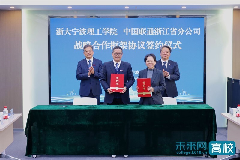 仪式上,双方签署战略合作框架协议。徐方代表学校对浙江联通给予学校的支持表示感谢。他表示,学校与浙江省及宁波市联通公司拥有深厚的合作基础,此次签约是双方深化校企合作、携手共赢发展的重要契机,希望以此次签约为新起点,充分整合发挥高校学科科研与人才优势、企业技术与市场资源优势,深化产教融合、协同创新,加速科技成果转化,培育高素质创新性应用型人才,共同为浙江数字经济高质量发展、产业转型升级贡献力量。