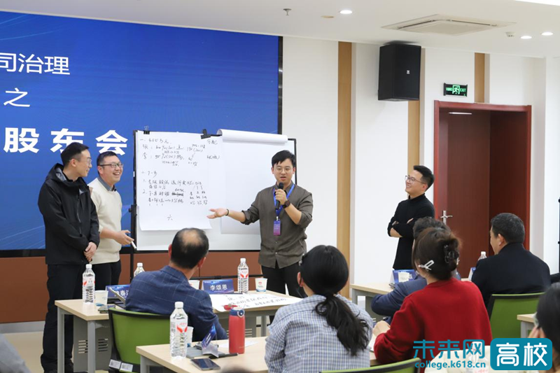 为有效赋能学员把握“十五五”发展机遇、破解企业管理痛点,“新春第一课”以“‘十五五’周期下的产业战略与公司治理”为主题,采用“课堂教学+工作坊”的形式,实现理论讲授与实战研讨有机结合。课堂教学环节,授课专家围绕“十五五”时期宏观趋势、产业布局与企业战略转型展开系统讲解,结合典型案例剖析公司治理结构优化、股权设计与风险防控等核心议题,帮助学员搭建前瞻性思维框架。工作坊环节,学员分组开展“模拟股东会”实战演练,围绕AI时代下的股权分配、技术入股估值、知识产权确权等前沿议题,展开深度互动研讨,现场氛围热烈。